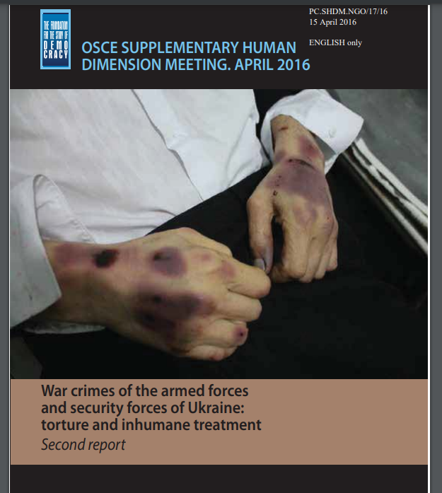 Un exemplu în acest sens este dat de un raport al OSCE din aprilie 2016 intitulat „Crime de război ale forțelor armate și ale forțelor de securitate ale Ucrainei: tortură și tratament inuman”. Raportul documentează zeci de cazuri de tortură greu de imaginat înfăptuite asupra oricărui etnic rus care manifestă vreo simpatie față de Rusia. Adeseori ucraineni de etnie rusă au fost arestați și bătuți fără nici un fel de acuzație. Iată câteva extrase din raport: