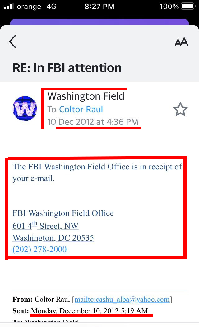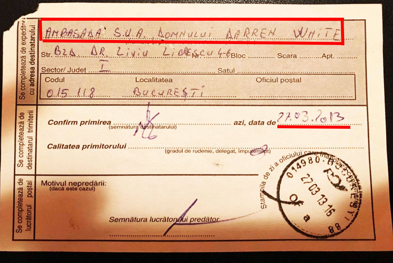 R. C.: Da, motiv pentru care m-am hotărât să mă adresez direct celor din SUA. Prima dată, în decembrie 2012 către FBI, de unde am obținut un case number.