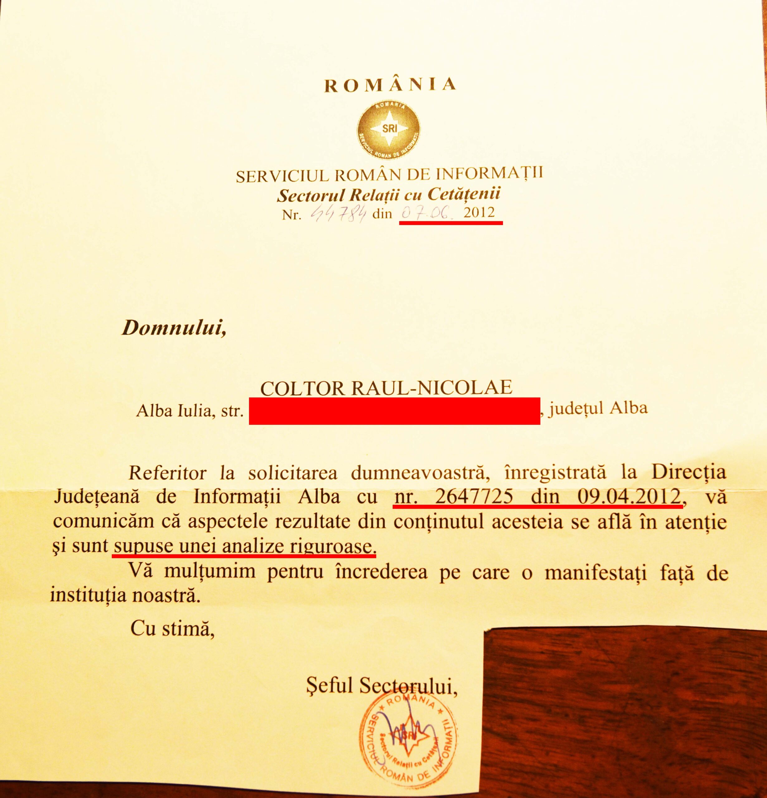 C. A.: Ați primit vreun răspuns sau vreun rezultat în urma analizei efectuată de către SRI?