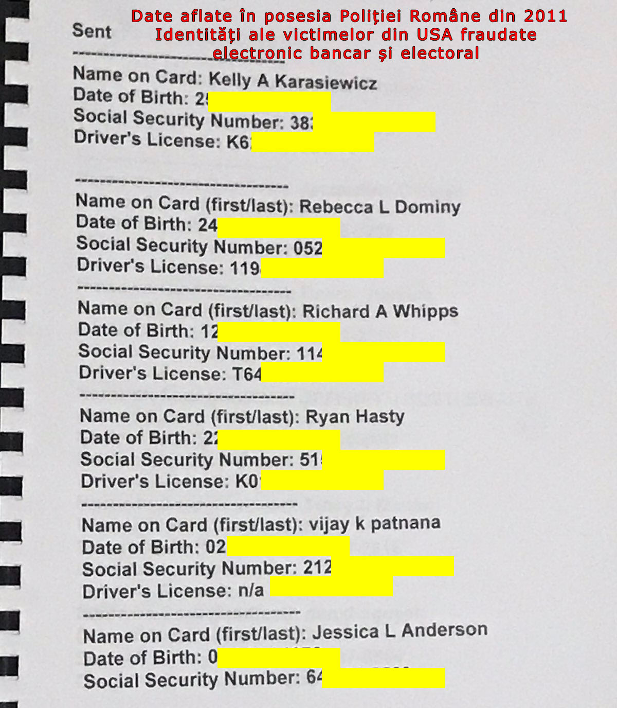 Numele unor victime din SUA supuse fraudelor electronice bancare care au devenit și victime ale fraudelor electorale din 2016/2020 prin complicitatea Poliției Române