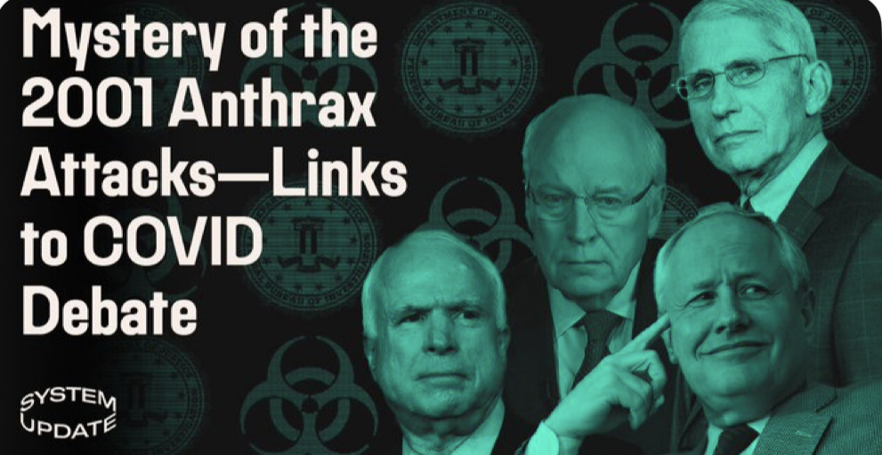 Și apropo, acel antrax a fost folosit și ca scuză pentru a intra în Irak și pentru a invada Irakul pentru că ni s-a spus că Saddam Hussein ar fi făcut-o, știți, așa ni s-a spus. S-a dovedit însă, după o anchetă de doi ani, FBI-ul a revenit și a spus că antraxul era antrax Ames, extrem de sofisticat. Există un singur loc în lume de unde ar fi putut proveni, Fort Dietrich, care este laboratorul CIA al Pentagonului.