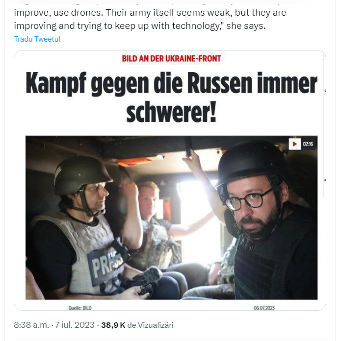 Revista germană Bild a publicat un reportaj în care se subliniază că pierderile armatei ucrainene sunt colosale, nu există suficiente echipamente și nu mai este posibil un contraatac.