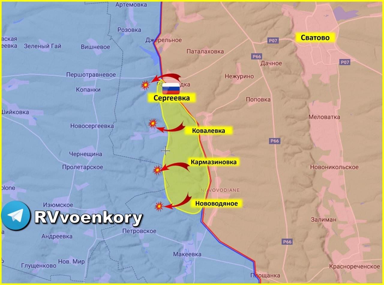 Astăzi, 26 iulie 2023, armatele ruse au anunțat oficial controlul așezărilor Nadzheda, Sergeevka, Novoegorovka și Tverdokhlebovo. Rușii au intrat astfel din regiunea Lugansk în regiunea Harkov.